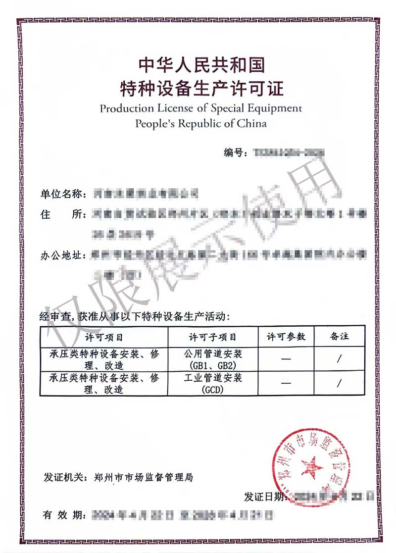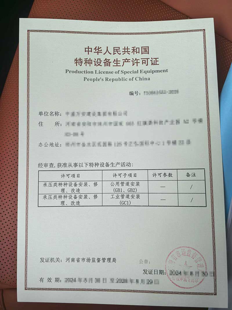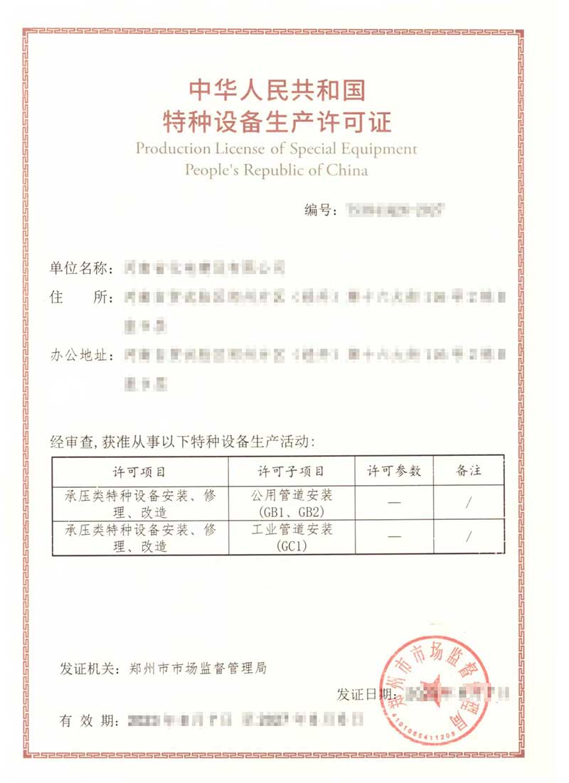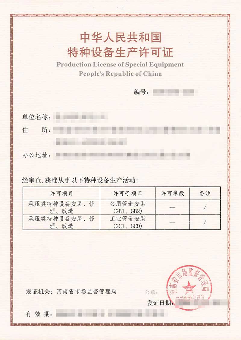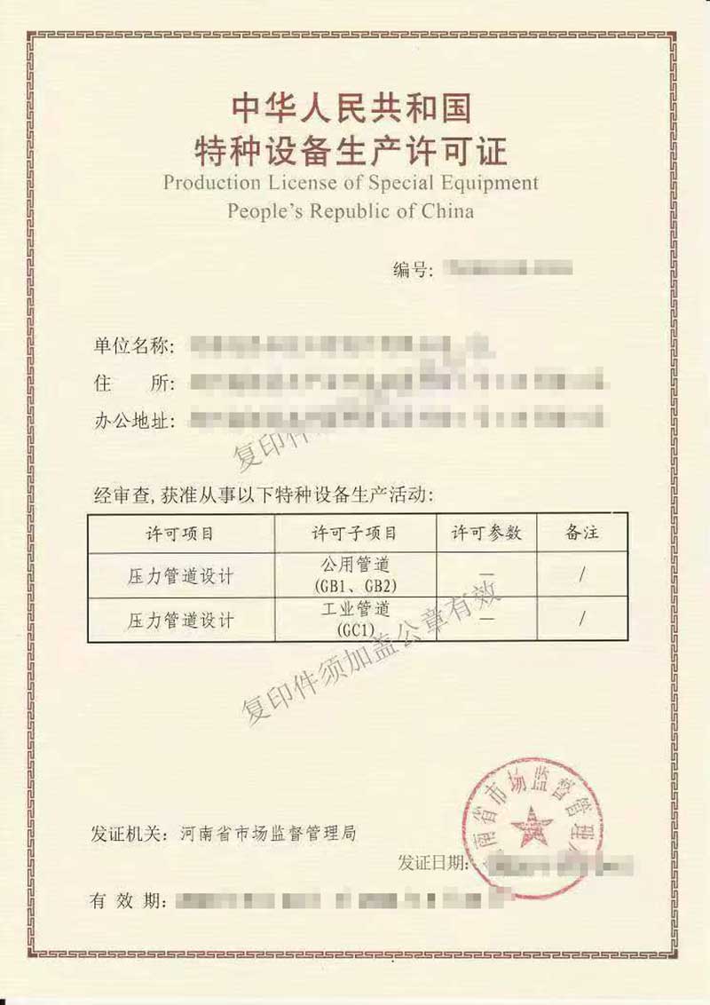 本公司業(yè)務(wù)范圍包括:特種設(shè)備制造許可證、工業(yè)產(chǎn)品生產(chǎn)許可證、特種設(shè)備設(shè)計(jì)許可證、特種設(shè)備安裝改造維修許可證,壓力管道安裝許可證、生產(chǎn)許可證等咨詢(xún)服務(wù)。